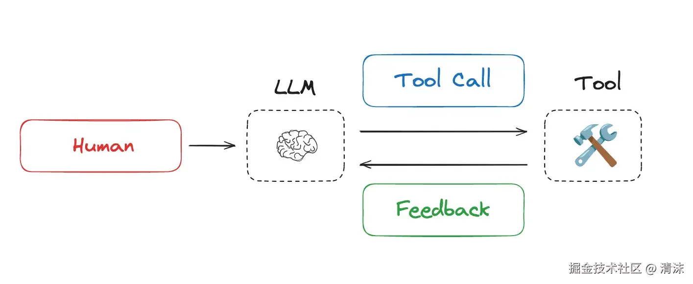 今年,随着 LLM 在推理和工具调用(MCP、Function Call 等)方面能力飞速提升。智能体交替进行 LLM 调用和工具调用,通常用于长期运行任务。智能体通过工具反馈决定下一步行动,即 ReACT(Reasoning and Acting)框架架构,通过 "思考-行动-观察" 循环,为上下文工程提供结构化管理模式。