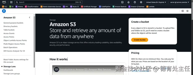 - Amazon S3 (Simple Storage Service) :它将作为网站文件的“存储仓库”。Amazon S3 提供了行业领先的持久性和可用性,你可以把它想象成一个几乎永远不会丢失数据的、无限大的硬盘 。