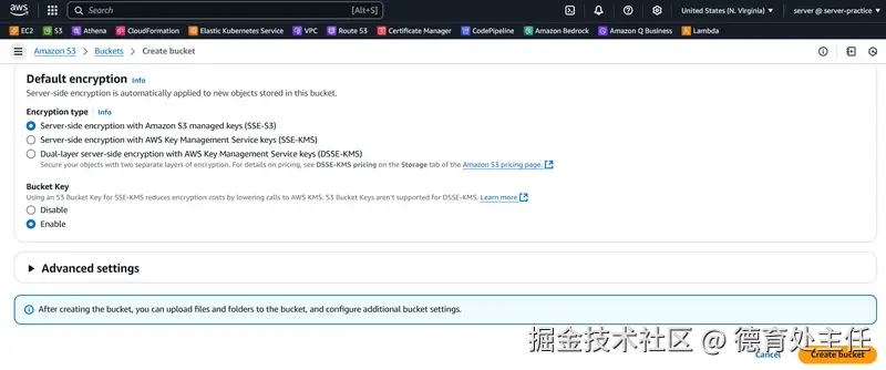 - 存储桶名称:输入一个全球唯一的名称。Amazon S3 存储桶名称是全局共享的,所以你可能需要加上一些独特的前缀或后缀,例如
