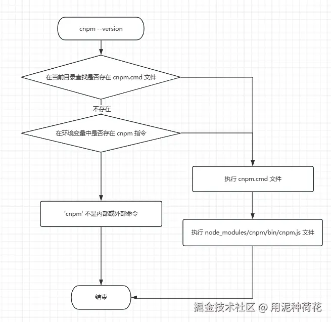 Path全局环境变量所有目录路径中查找是否存在cnpm.cmd文件 - 执行