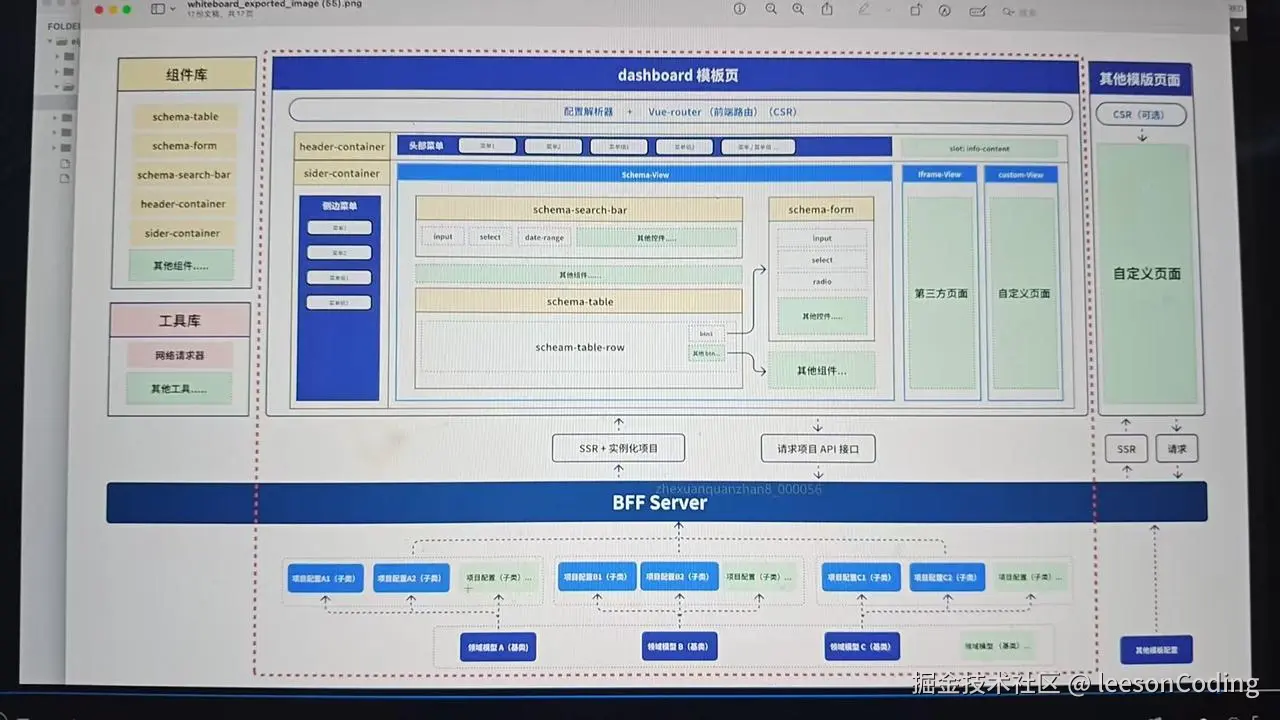 从框架层面出发,有没有什么方式能够解决这个问题?基于领域模型的理念使用一份可配置的 schema 描述文件,正好可以达到这样一种效果,这是一种可行的方案。以数据为驱动,描述一整个站点,而不局限于某一个组件或模块。目标是沉淀 80% 的重复代码,20% 定制化开发能力。程序员从重复的 curd 工作当中解放出来,工作的重心变成搭建一套稳定可维护,拓展性强的系统。对于开发成本的控制,系统的深度建设和横向拓展来说,都是逐步走向一个良性循环当中的