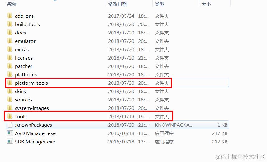 **假如sdk没有build-tools和platform-tools文件夹,要把提供的文件夹移动到此处, 后面只需要配置环境变量即可,不需要下载了**
