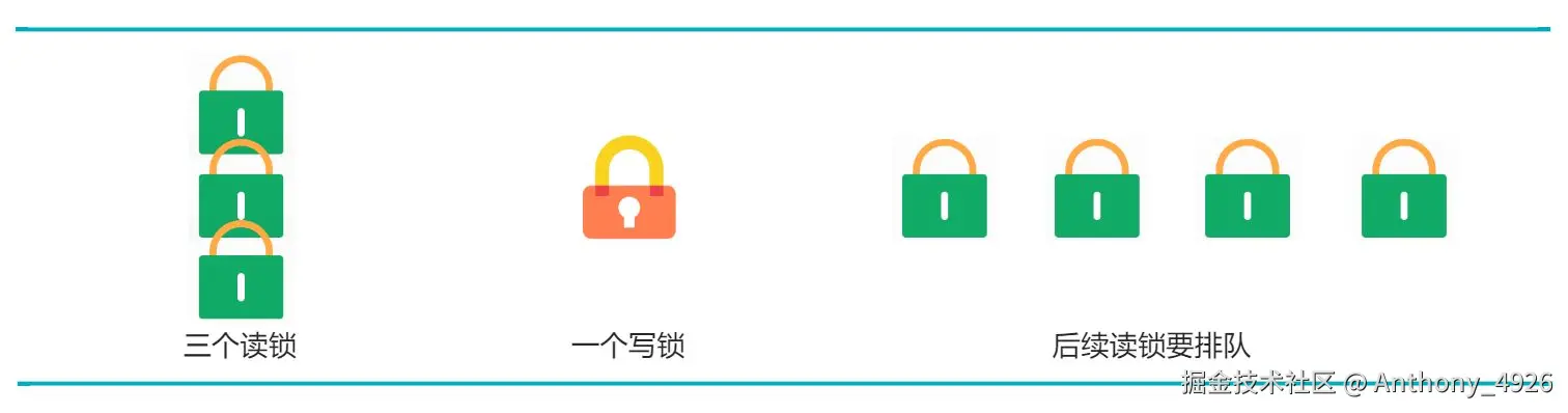 关于写锁的优先级高于读锁,你可以理解为存在一个加锁队列,如下图。先到达的三个读锁,兼容,可同时获得锁。有一个写锁到达后,读写互斥,写锁要等待前三个读锁释放。后续到达的读锁,由于前边有写锁,也要等待。不会因为,后续到达的是读锁,和先到达的三个读锁兼容而获得锁。