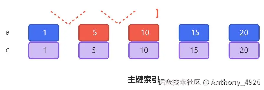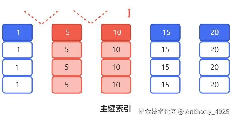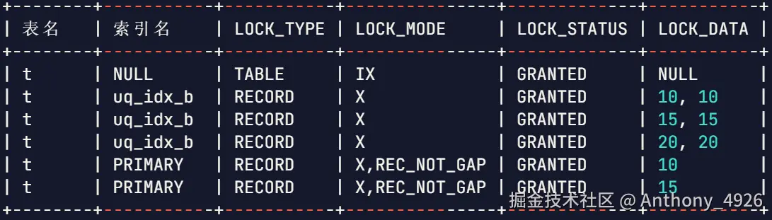10,10``15,15``20,20分别加X锁 - 主键索引上: