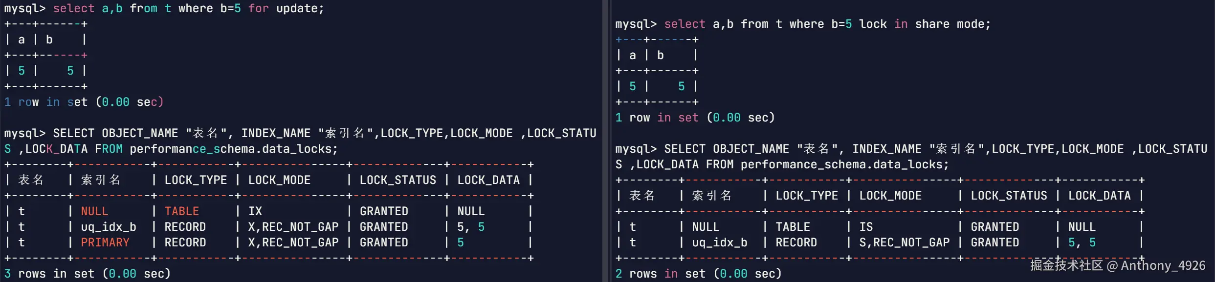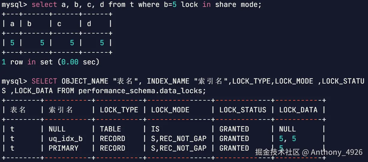 | 典型SQL | SELECT ... LOCK IN SHARE MODE | SELECT ... FOR UPDATE |