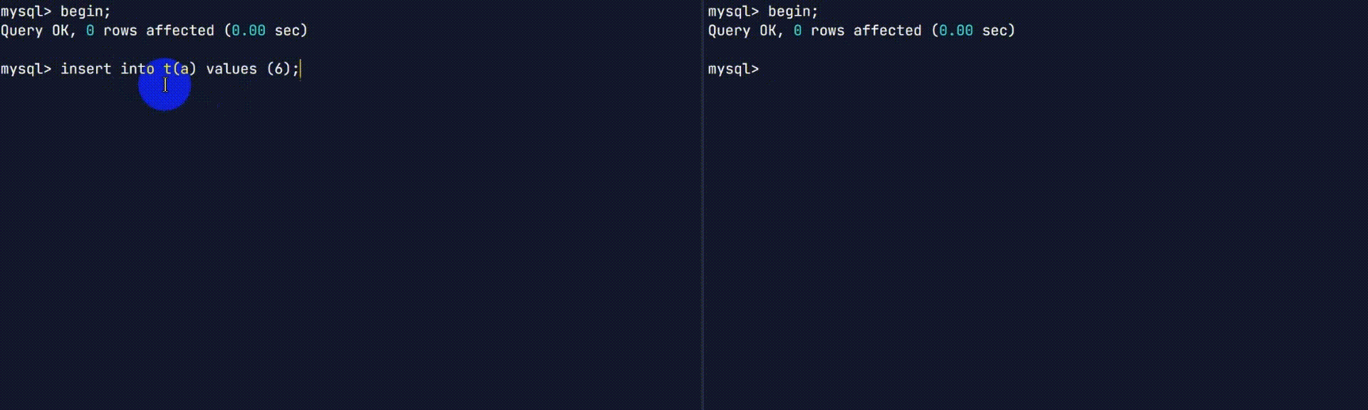 | 2 | update t set d = d + 1 where c = 10;(blocked) | |