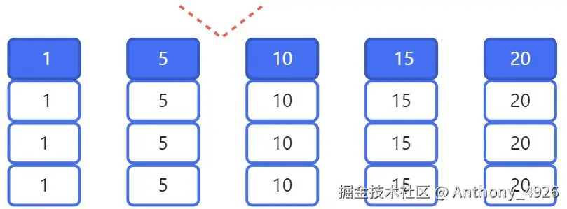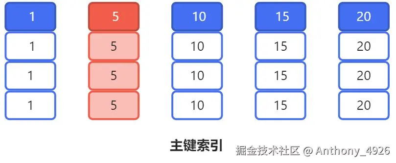 为了方便后续展示,这里转置了一下,每列表示一行数据,深色表示主键值。