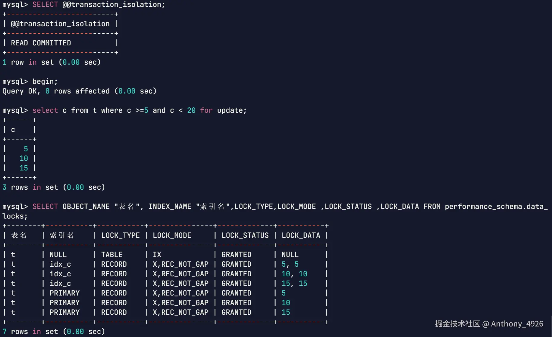 | 读已提交普通索引范围查询 |