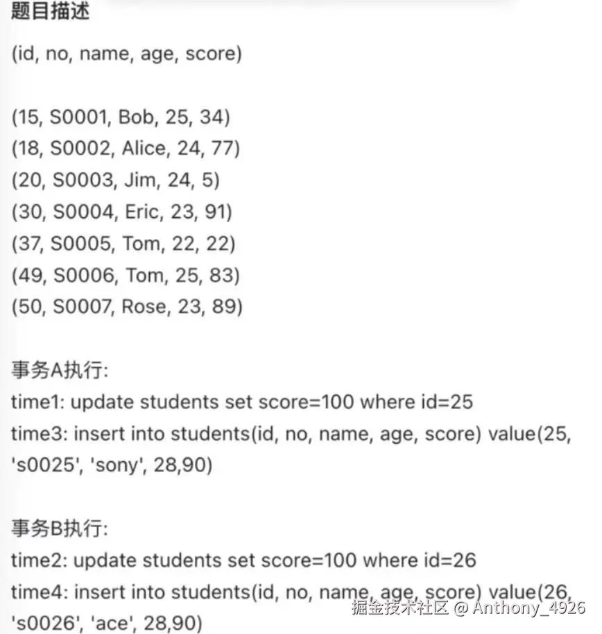 小林coding中有一篇文章,讲的是字节的面试题,内容就是关于间隙锁引发死锁的问题。
