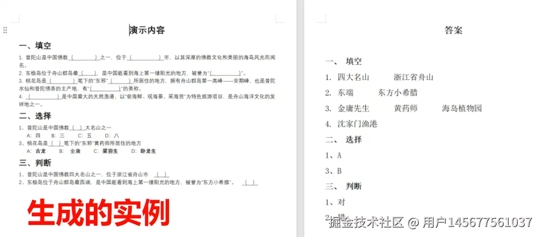 可以看到,被标记的内容已成功提取,最终生成一份含答案的新文档,原文件保持不变,整个过程仅需几秒钟,大大节省了出题时间。