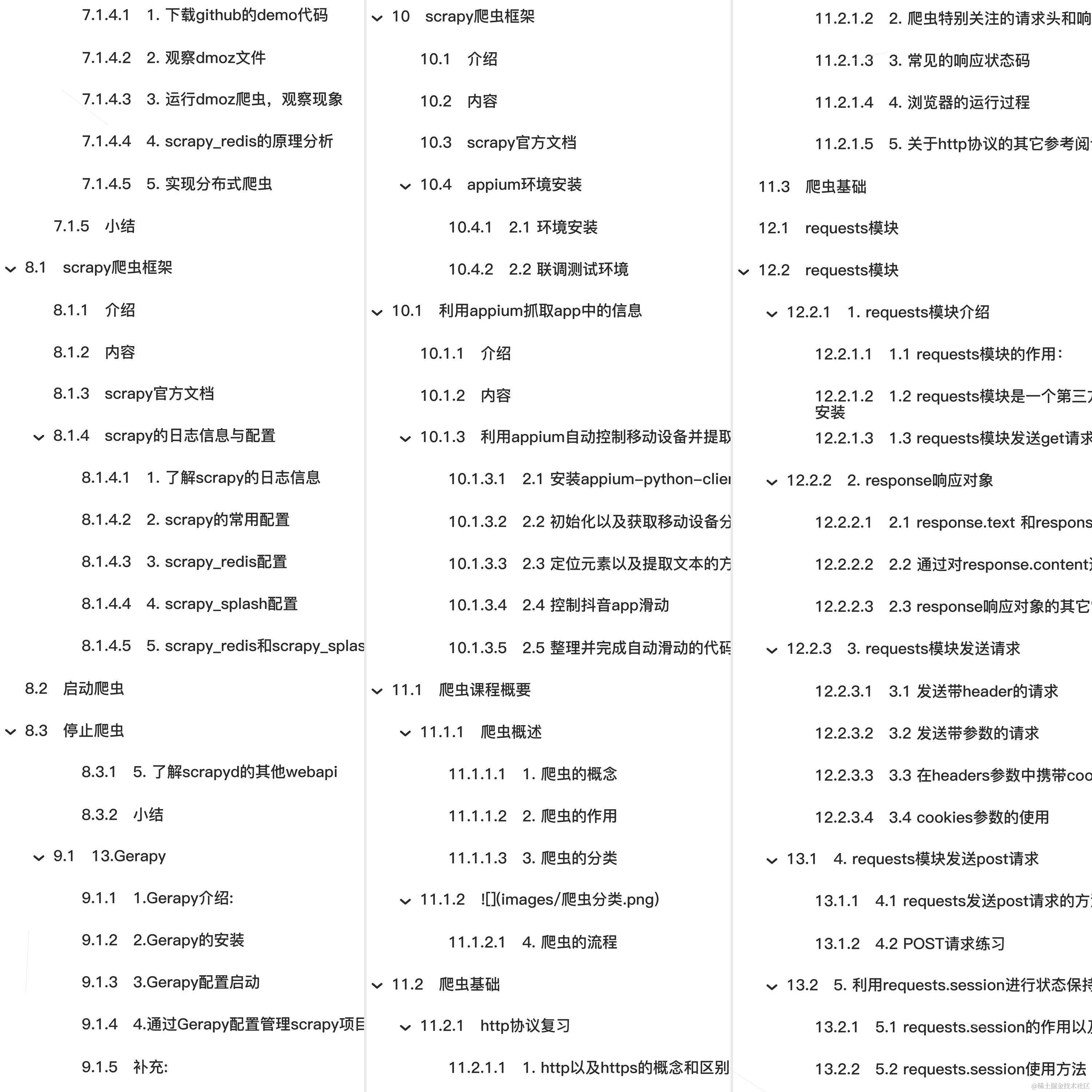 教程总体简介:Mongodb数据库、scrapy爬虫框架、人民币玩家的代码(使用abuyun提供的代理ip)、启动爬虫、停止爬虫、利用appium抓取app中的信息、爬虫课程概要、爬虫基础、requests模块、数据提取概述、数据提取-jsonpath模块、数据提取概要、数据提取-lxml模块、Selenium课程概要、获取当前标签页的全部cookie信息、把cookie转化为字典、删除所有的cookie、反爬与反反爬、- 实现思路:、- 使用session发送rKey获取登录需要信息、- url:、- 方法: get、获取session对象、设置session的请求头信息、print(response.content.decode())、- 根据获取信息对密码进行加密、- 准备用户名和密码、- 使用js2py生成js的执行环境:context