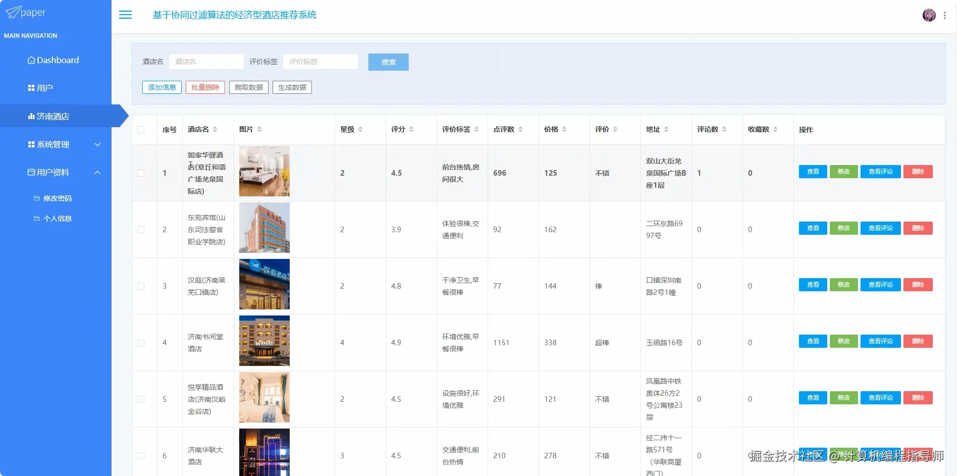 基于协同过滤算法的经济型酒店推荐系统-图片展示