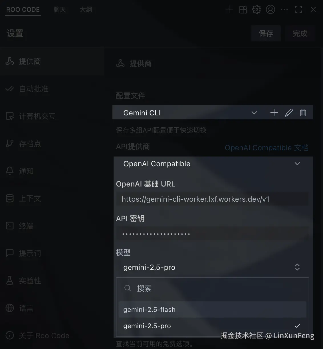 如图,这里以 Roo Code 为例,新增一个配置文件,选择 OpenAI Compatible,填写基础 URL 和密钥,然后点击模型,会自动列出所有支持的模型,选择你需要的模型后保存就可以使用了。
