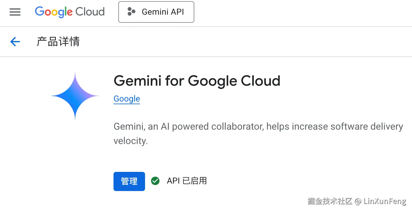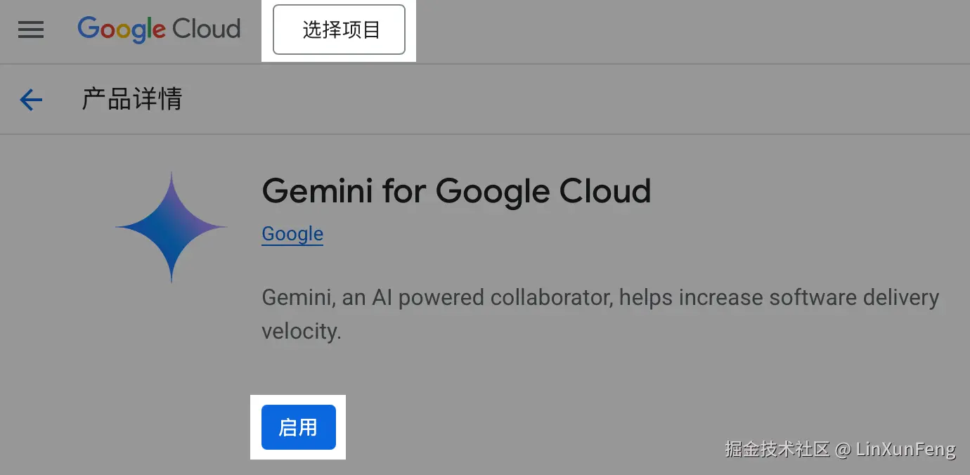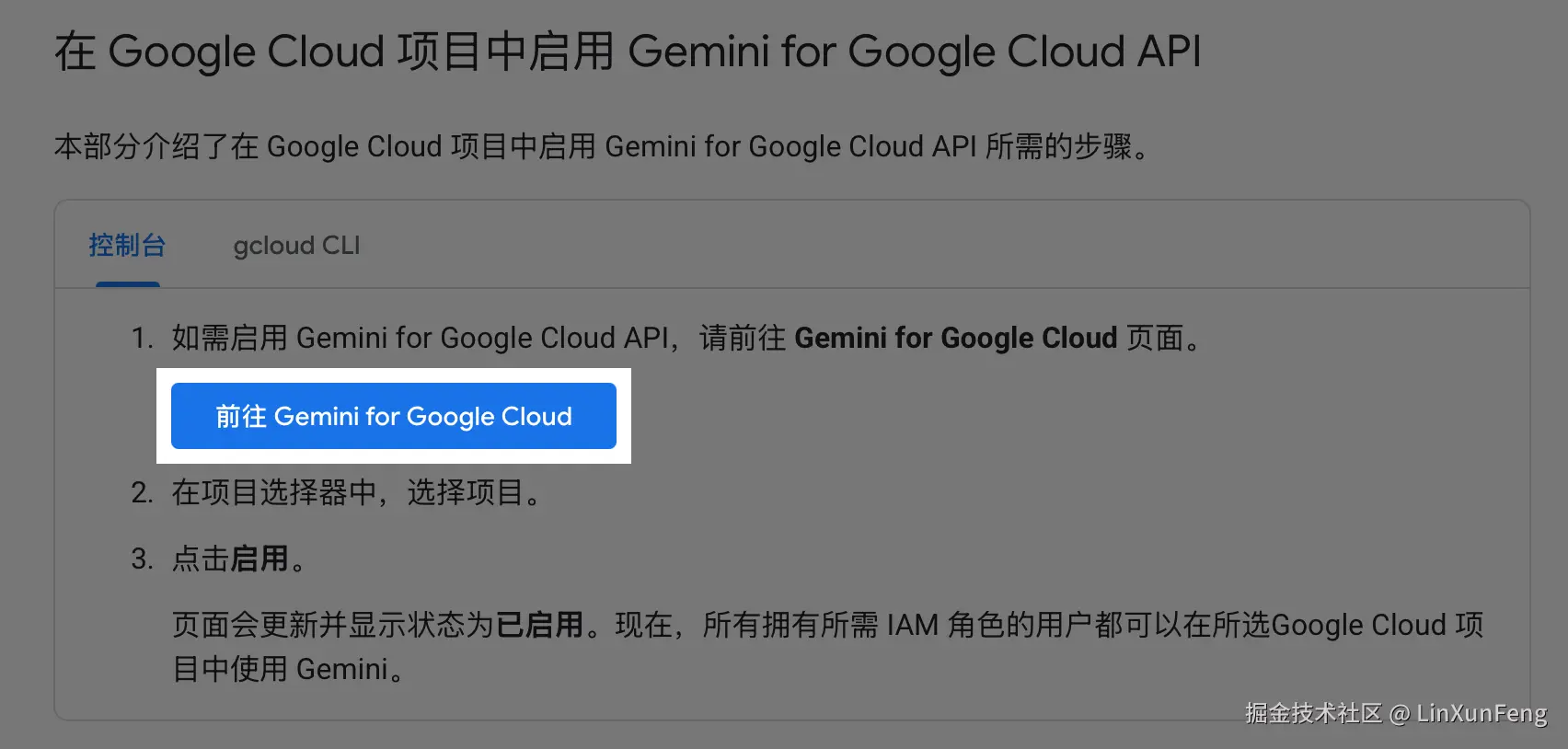 点击写着 前往 Gemini for Google Cloud 的蓝色大按钮。