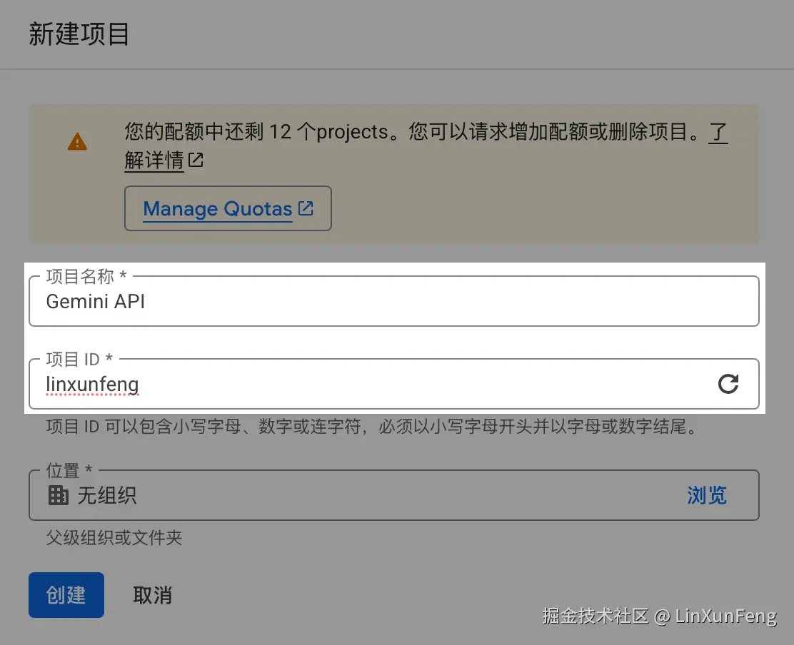 项目名称 和 项目 ID 根据你自己的情况去填写