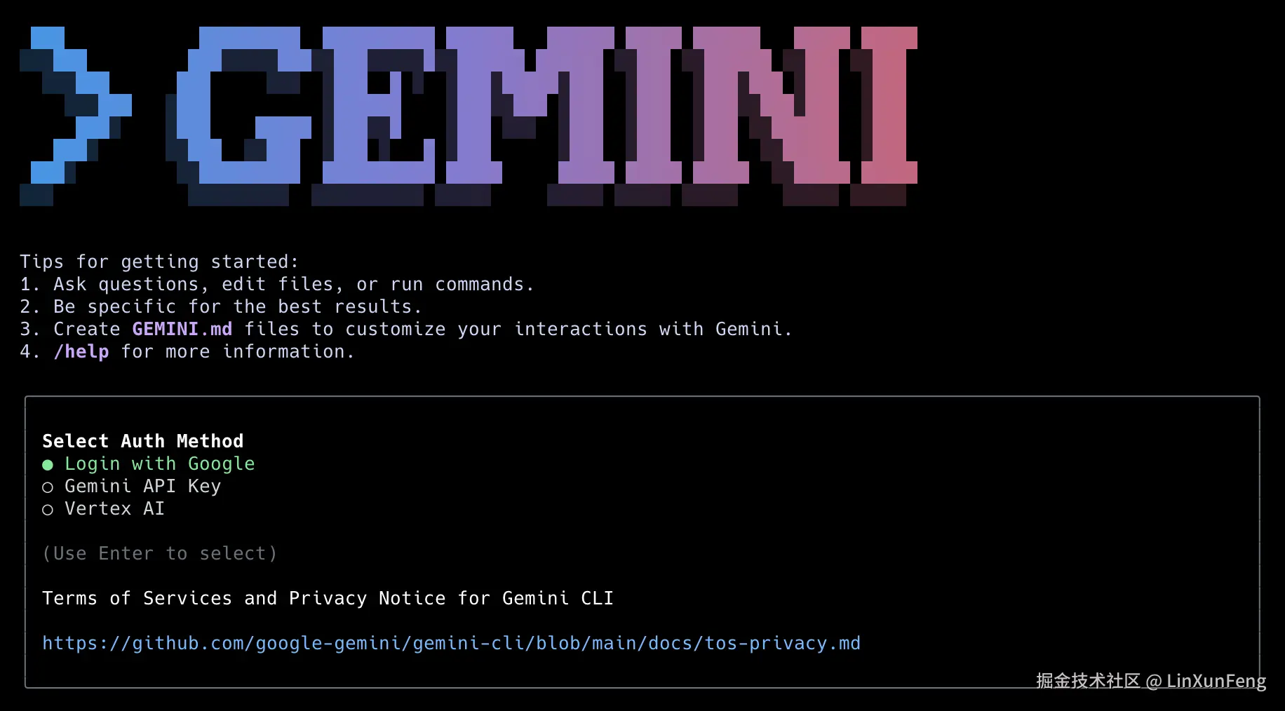 再回到终端,你会发现已经可以正常使用 gemini 了