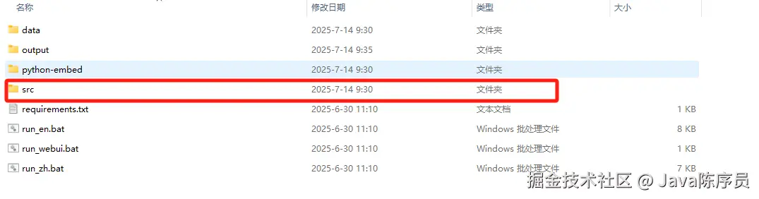 4、将解压后的模型文件放到安装包 /src/model 文件夹中