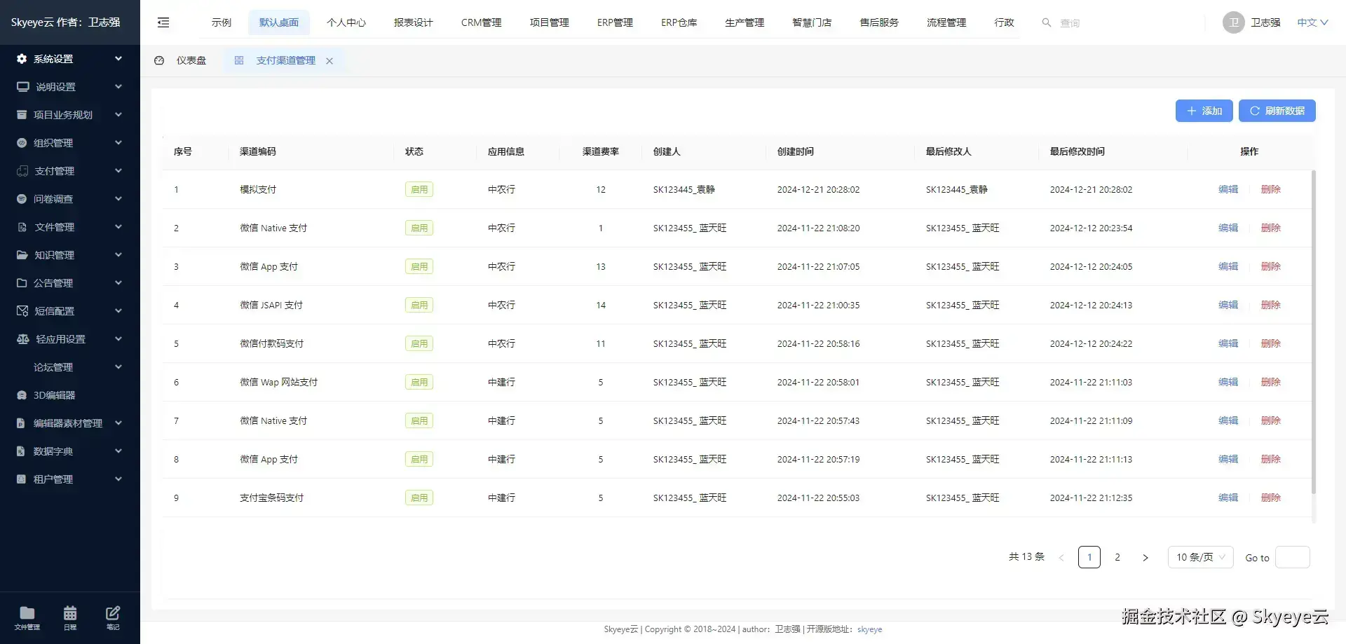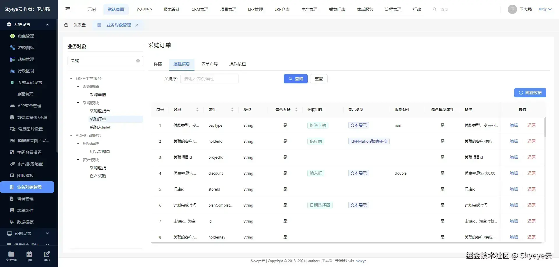 Skyeye 云智能制造,智能制造一体化,采用 SpringBoot+ UNI-APP + Ant Design Vue 的低代码平台开发模式。包含 50 多种电子流程,CRM、PM、ERP、MES、ADM、OA、EHR、AI、项目、商城、财务、多班次考勤、薪资、招聘、云售后、论坛、问卷、报表设计、工作流、Saas 等功能。打造全网首套低代码、功能最全的智能制造行业供应链一体化管理软件