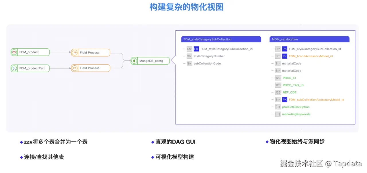不仅能采集数据,还能“以流驱动建模”。TapData 支持构建实时物化视图,实现: