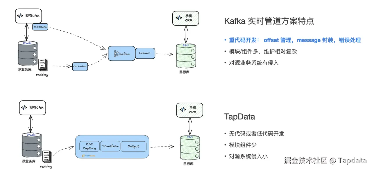 企业经过验证测试后,引入 TapData 实时数据平台,作为 Kafka 架构的替代方案: