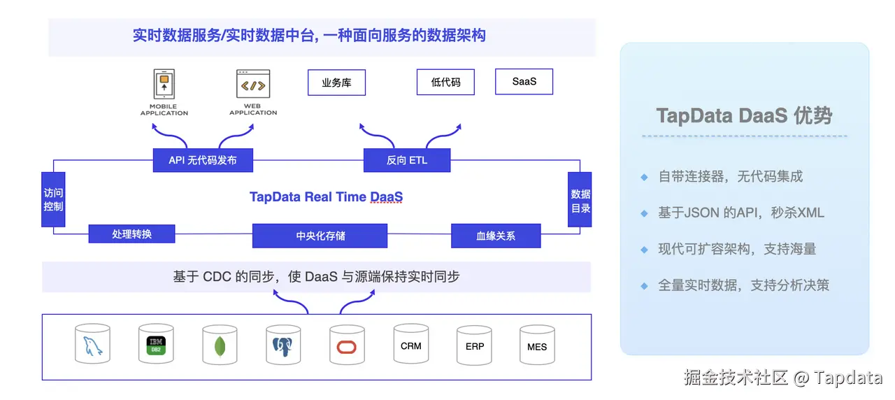 TapData 基于“增量数据驱动 + 数据建模 + 服务化输出”的架构,帮助企业快速搭建统一数据服务平台: