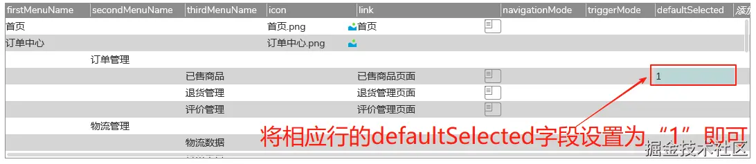 若中继器中多个行填写“1”,则会将首个填写为“1”且是叶子的行设为默认菜单。