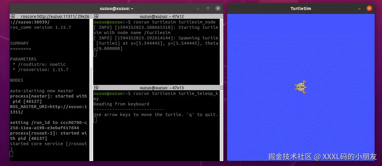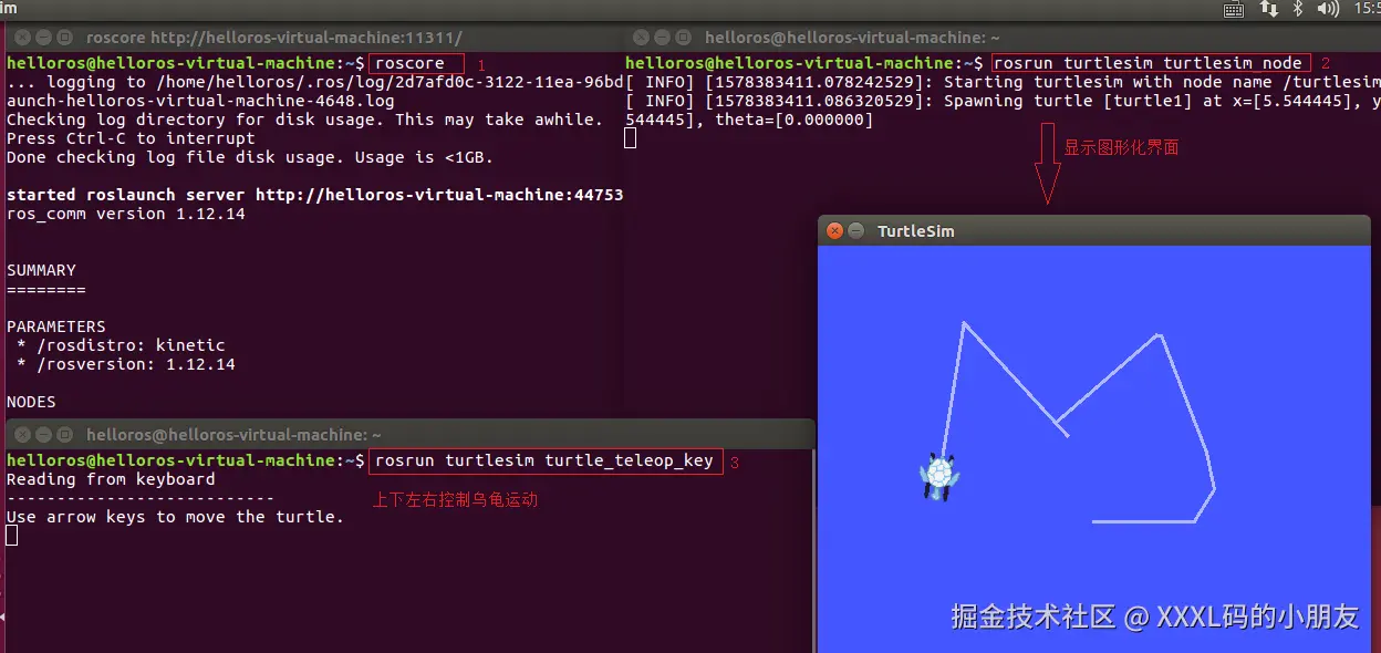 1.ROS安装成功后,可以运行内置案例:该案例是通过键盘控制乌龟运动2.集成开发环境使用了VScode,可以提高开发效率