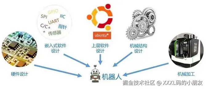机器人是一种高度复杂的系统性实现,机器人设计包含了机械加工、机械结构设计、硬件设计、嵌入式软件设计、上层软件设计....是各种硬件与软件集成,甚至可以说机器人系统是当今工业体系的集大成者。
