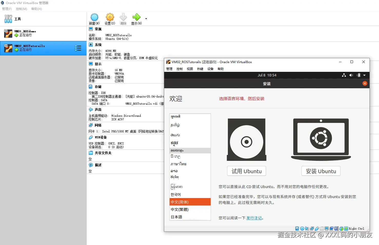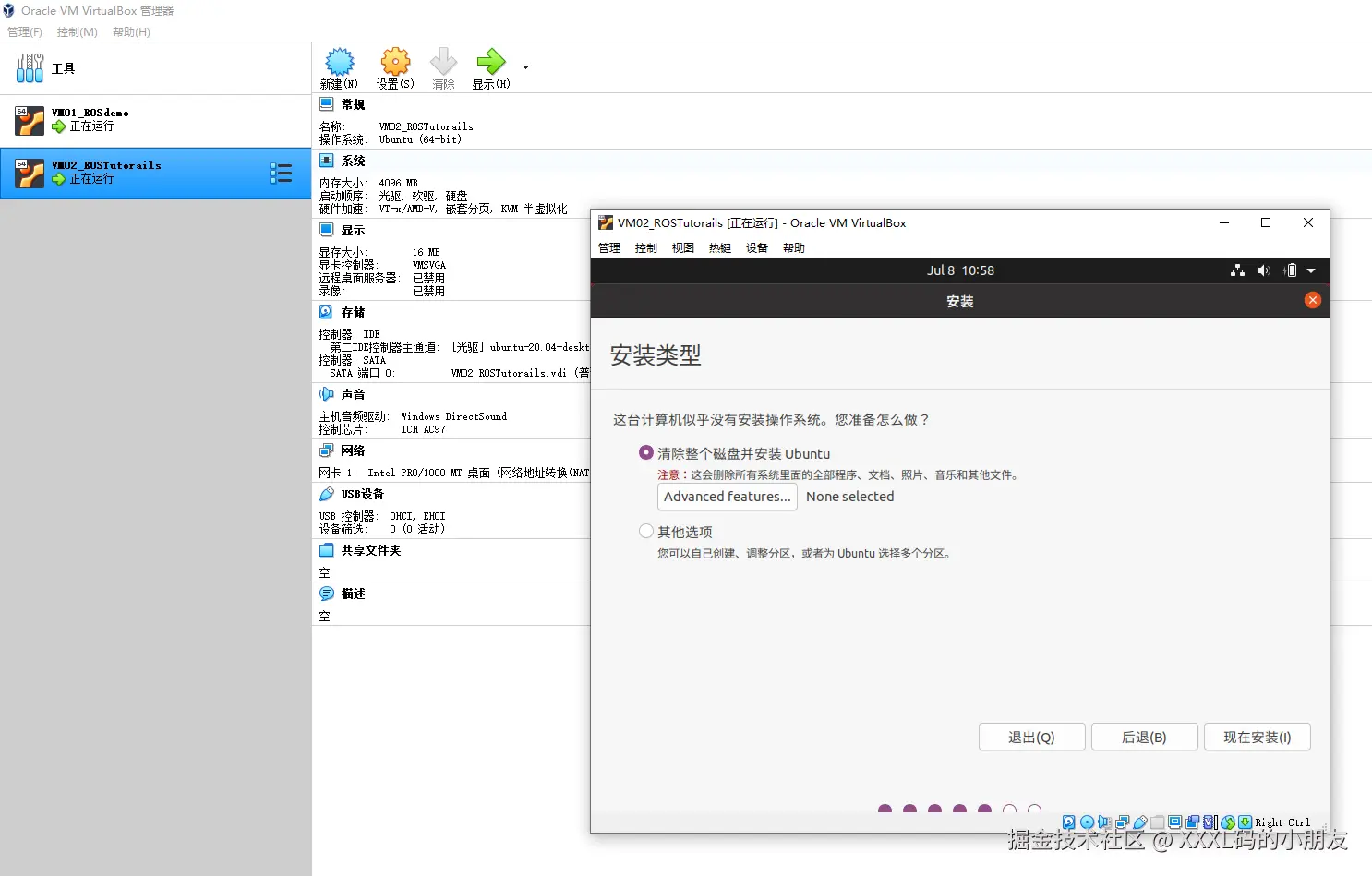 启动后,开始配置 ubuntu 操作系统: