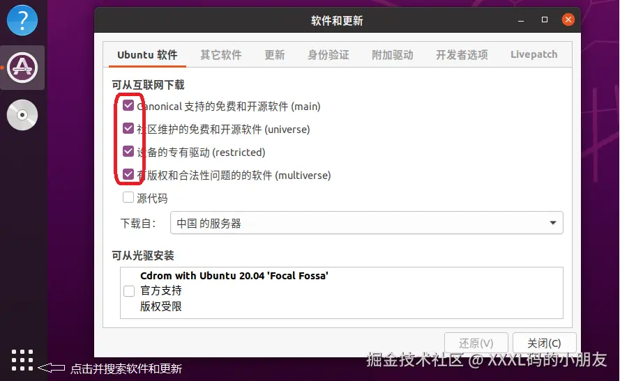 1.配置ubuntu的软件和更新
