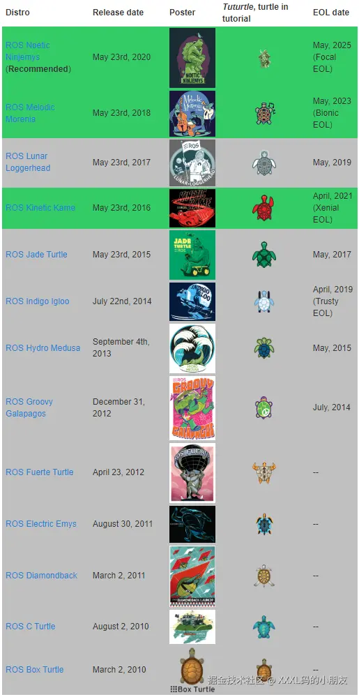 ROS的发行版本(ROS distribution)指ROS软件包的版本,其与Linux的发行版本(如Ubuntu)的概念类似。推出ROS发行版本的目的在于使开发人员可以使用相对稳定的代码库,直到其准备好将所有内容进行版本升级为止。因此,每个发行版本推出后,ROS开发者通常仅对这一版本的bug进行修复,同时提供少量针对核心软件包的改进。