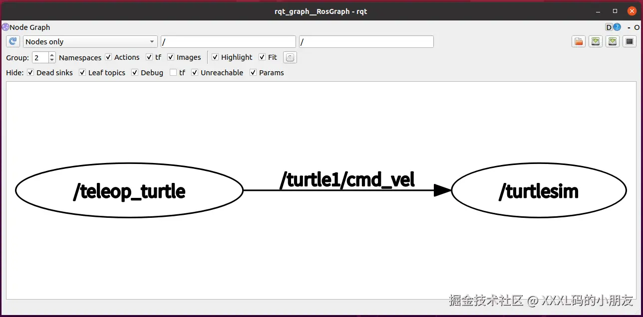 rqt_graph能够创建一个显示当前系统运行情况的动态图形。ROS 分布式系统中不同进程需要进行数据交互,计算图可以以点对点的网络形式表现数据交互过程。rqt_graph是rqt程序包中的一部分。