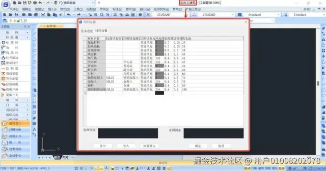 浩辰云建筑CAD图形设置是管理图纸内的全局参数,包含基本设定和材料设定,如绘图的基本参数、墙体的加粗、填充图案等的设置。