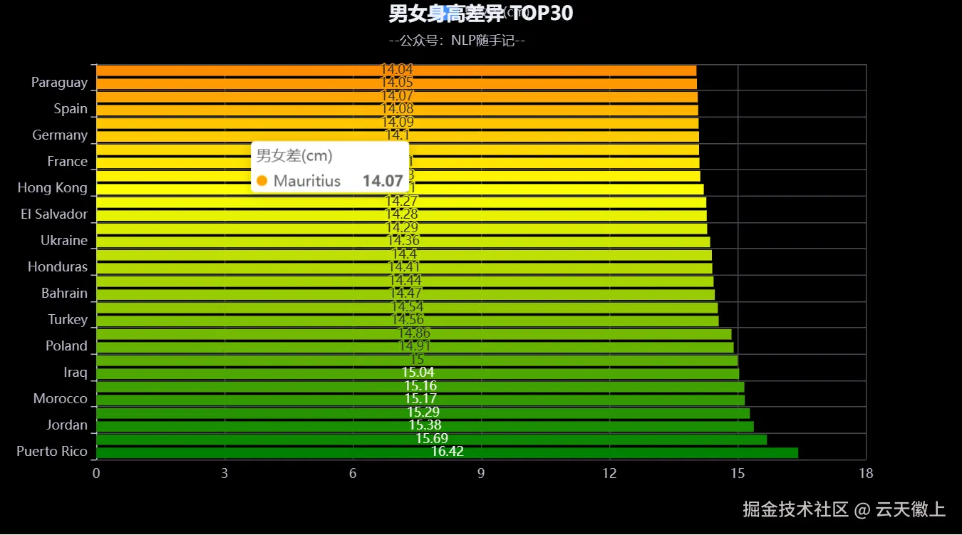 title_opts=opts.TitleOpts(title="男女身高差异 TOP30", subtitle="--公众号:NLP随手记--", pos_left="center"),