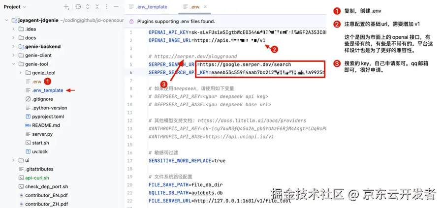 •这里要在工程的 genie-tool 下,复制的 .env 并修改配置文件。