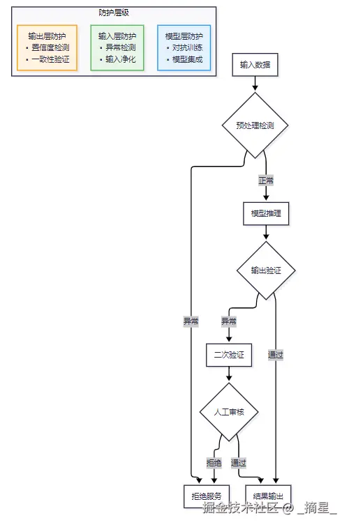 针对对抗攻击,我们可以采用多层次的防护策略:图2 智能体对抗攻击防护流程图