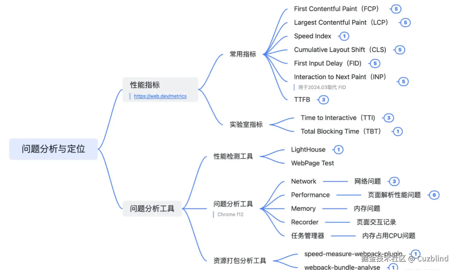 当我们碰到页面性能、构建效率慢,我们首先需要分析定位具体问题。我们常用的参考性能指标和可