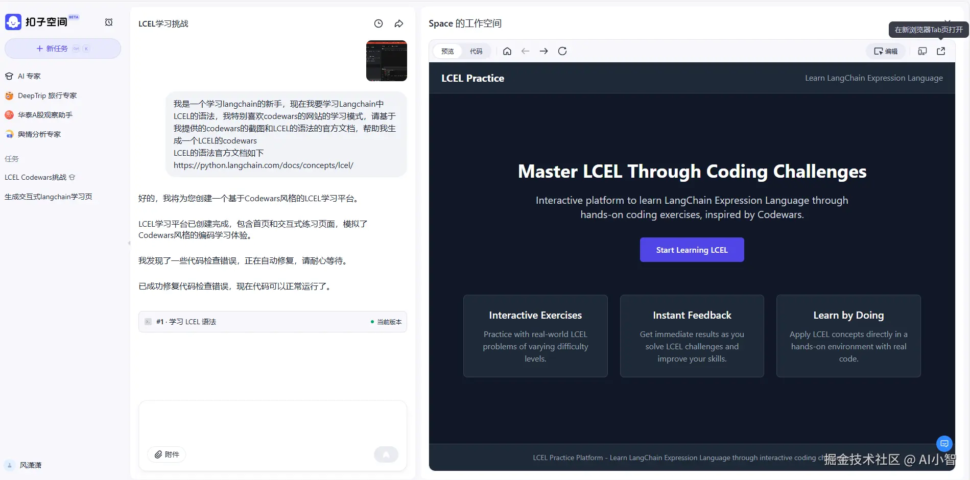 这里为大家附上小站的原始连接,有兴趣的同学可以访问看看:space.coze.cn/coding-expe…