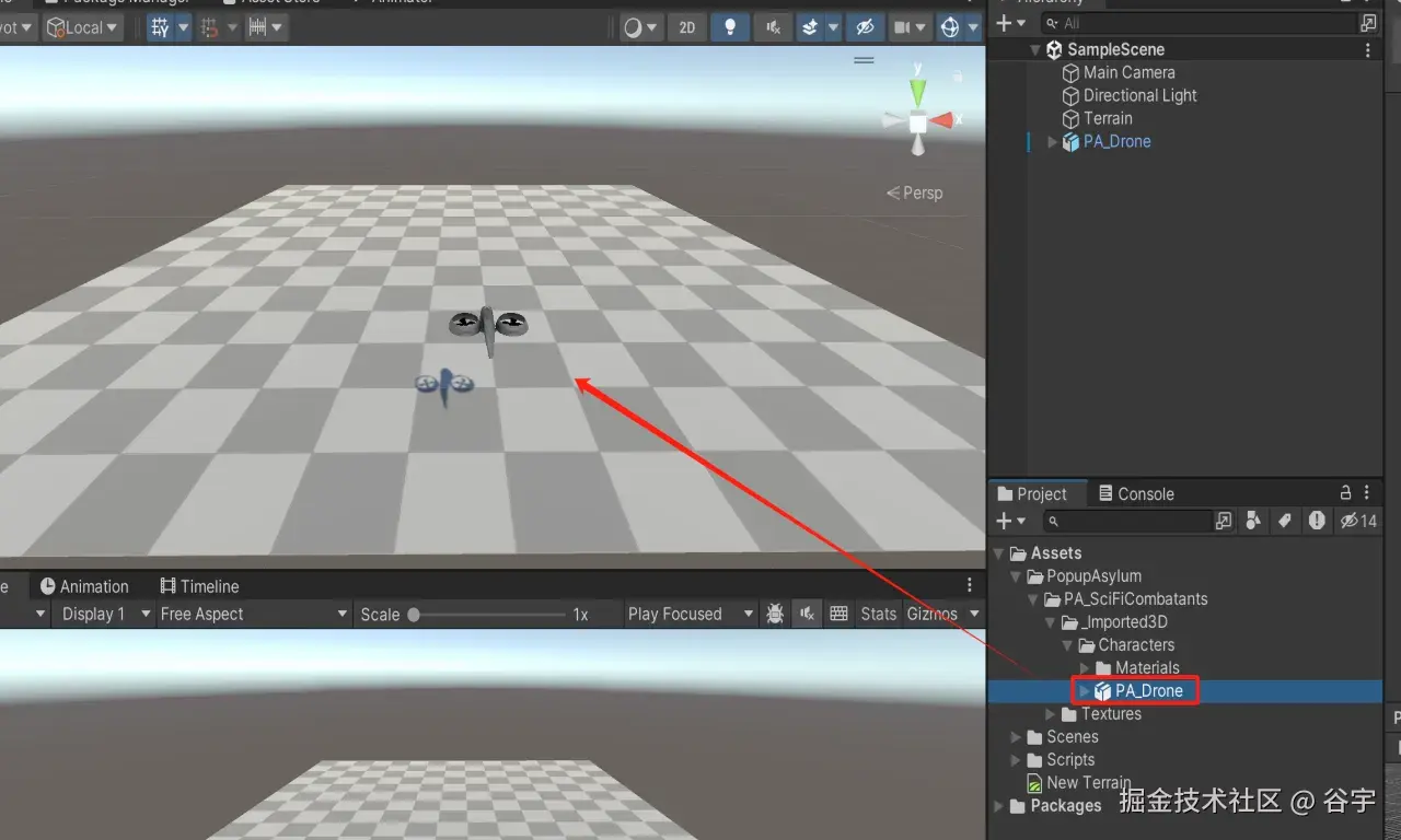 接着我们把飞船拖拉到开发场景中。