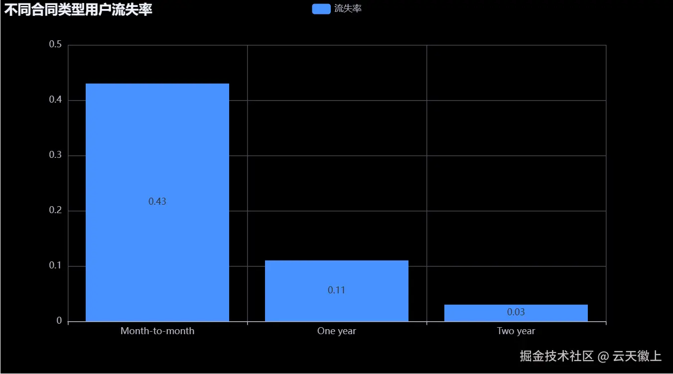 我们再看看不同合同类型对用户流失率的影响。
