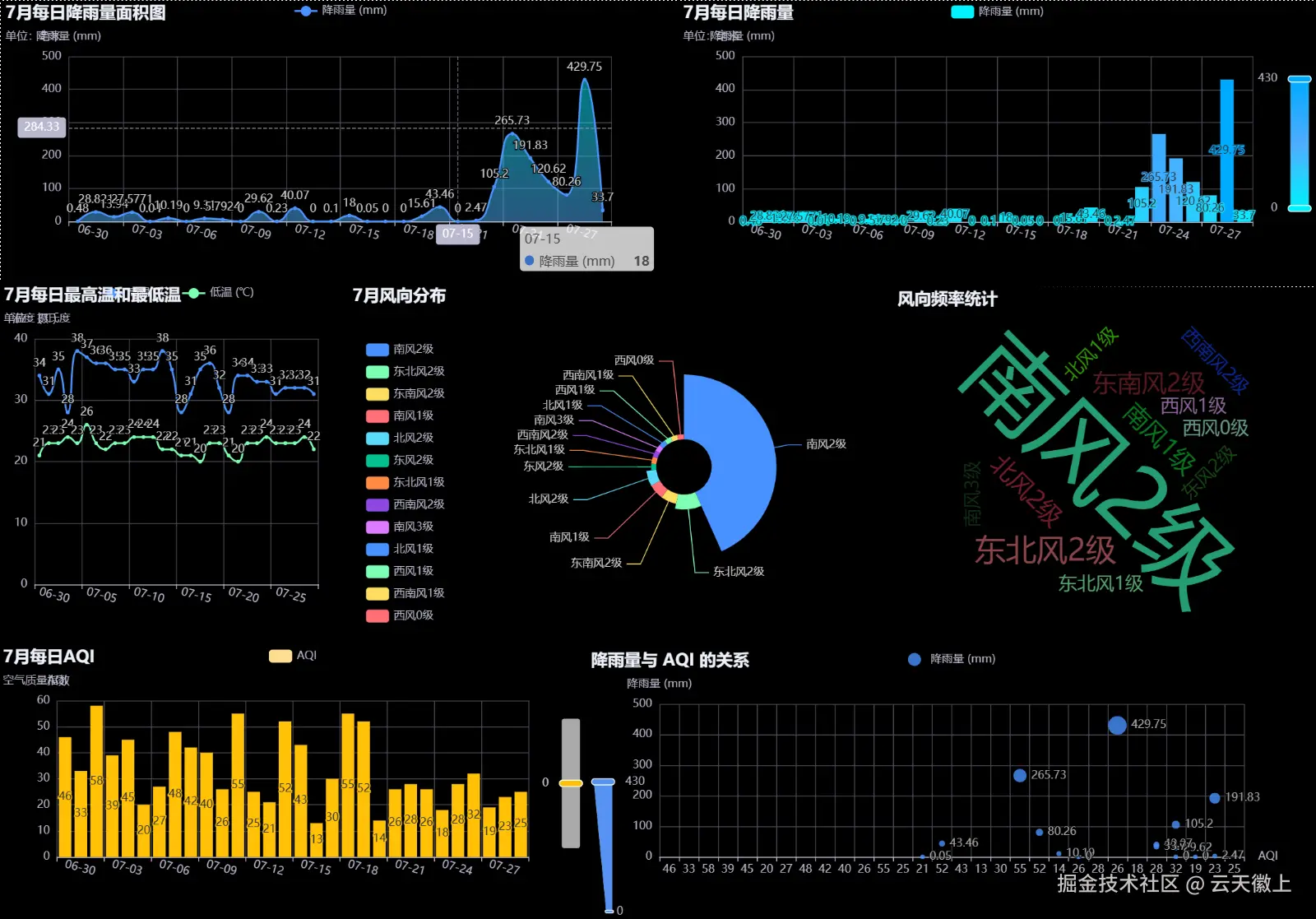 通过上述可视化分析,我们可以清晰地看到7月份密云区的天气情况,特别是暴雨的形成机制和社会影响:
