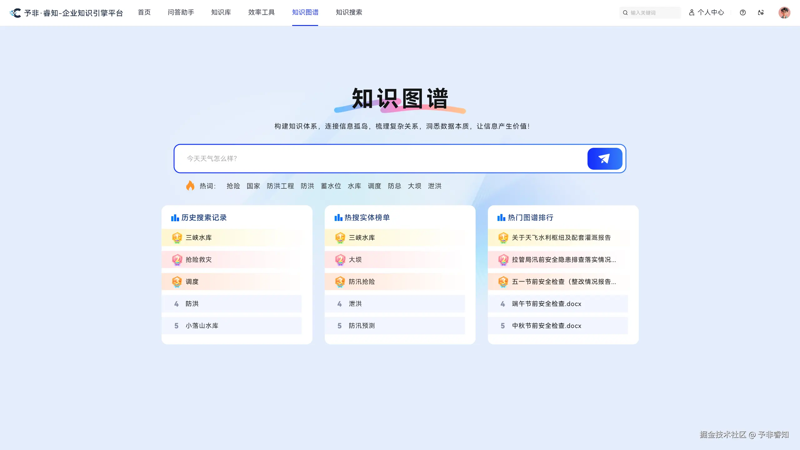 在当今数字化浪潮席卷全球的时代,水利行业作为国家基础设施建设与资源管理的关键领域,正面临着从传统模式向智能化、高效化转型的紧迫任务。数据分散、知识利用效率低下等难题,如同重重壁垒,阻碍着水利行业的进一步发展。在此关键节点,华创数字云精心打造的予非・睿知企业知识中台应运而生,以其卓越的技术架构和对水利行业的深刻理解,为水利领域的知识管理带来了创新性的解决方案,助力行业突破发展瓶颈,迈向智能化的新征程。