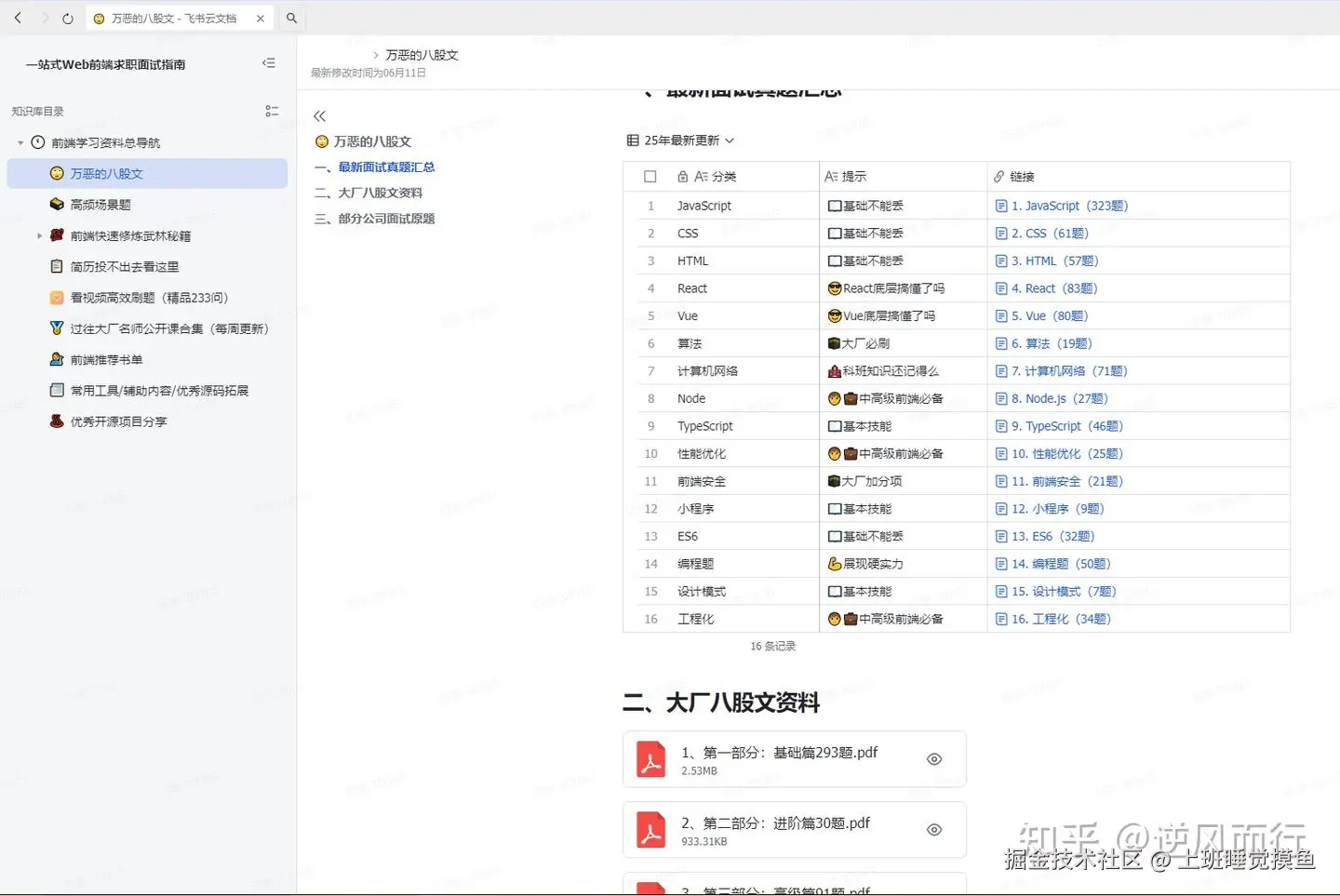 2025年的前端确实要求更高了,但机会总是留给有准备的人。建议大家结合自身情况,有针对性地提升。小编将以上的面试合集做了一个整理,还有更多的JavaScript、CSS、ES6、Vue、Vue3、React、Node.js、小程序、HTTP、Typescript、Webpack、Git、Linux、算法面试、设计模式等面试题库也一并分享出来,供大家参考