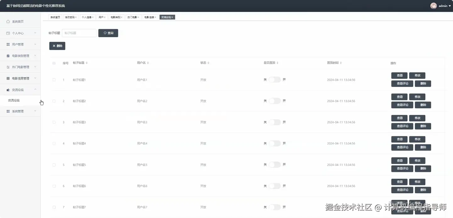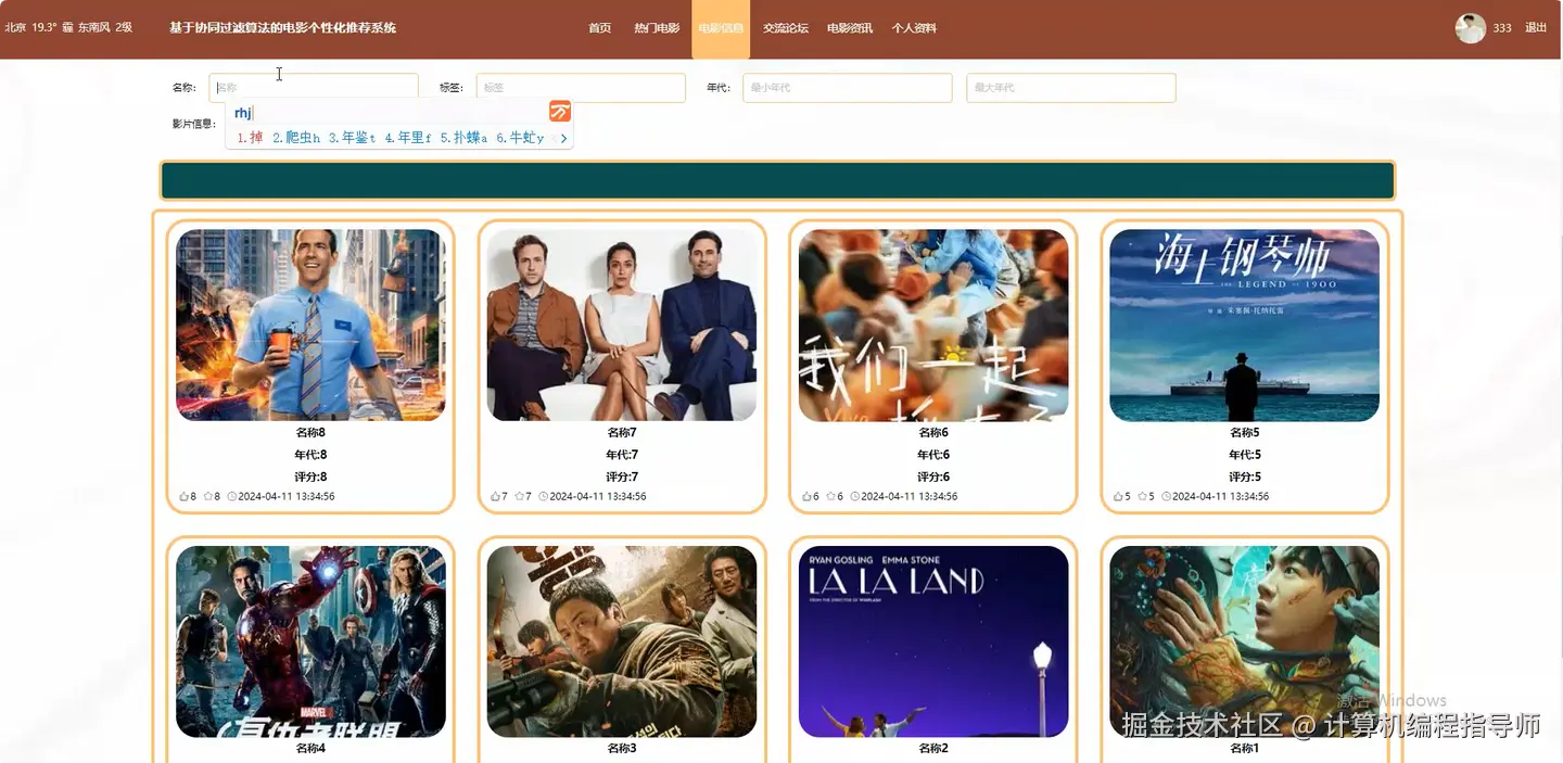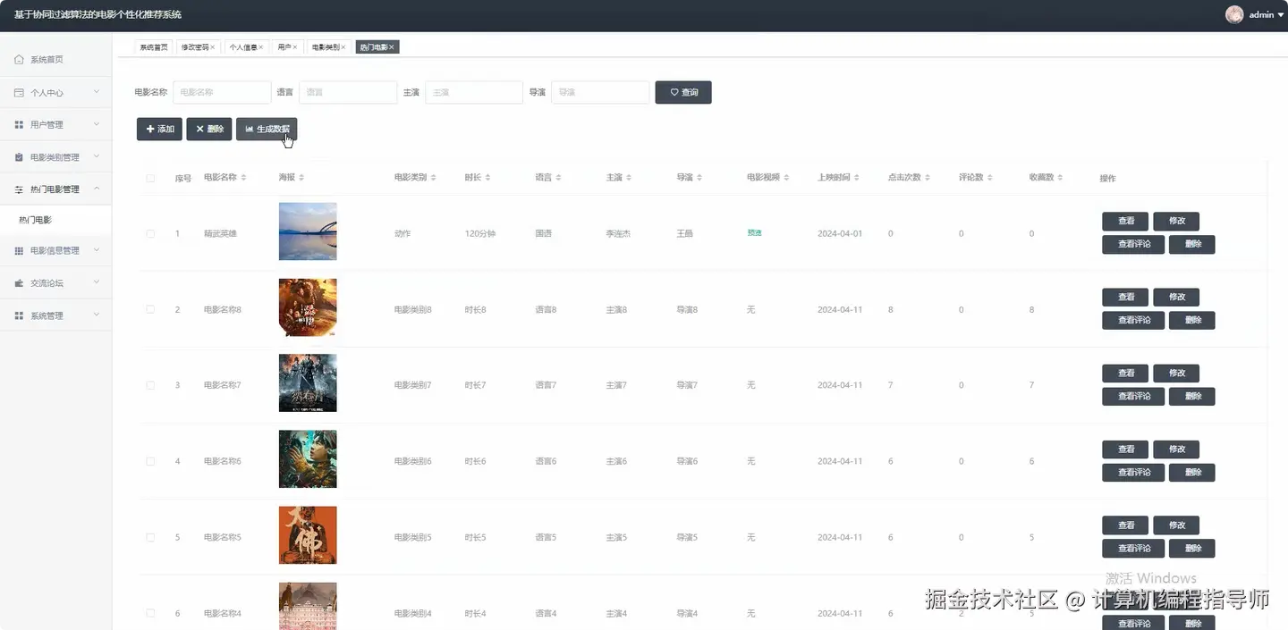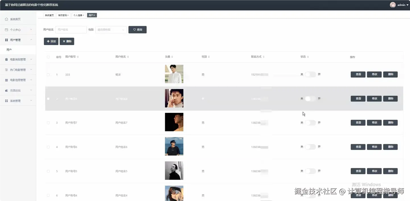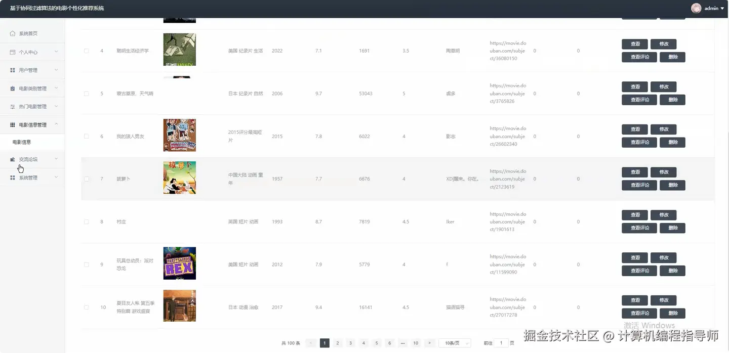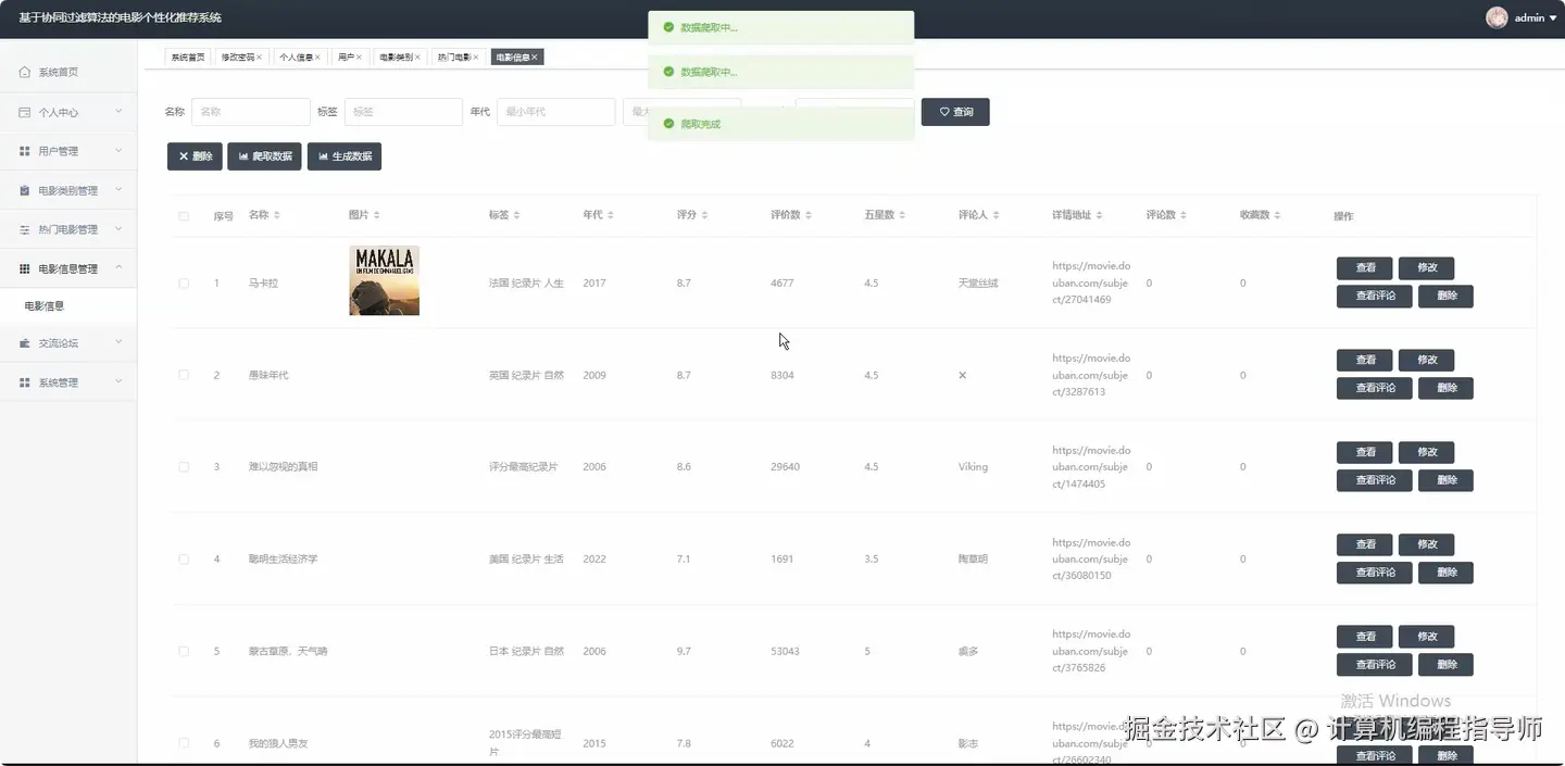 基于协同过滤算法的电影个性化推荐系统 计算机毕设计题推荐 Java毕设 Python毕设 大数据毕设 适合作为毕业设计 课程设计 毕业设计 附源码+安装+讲解