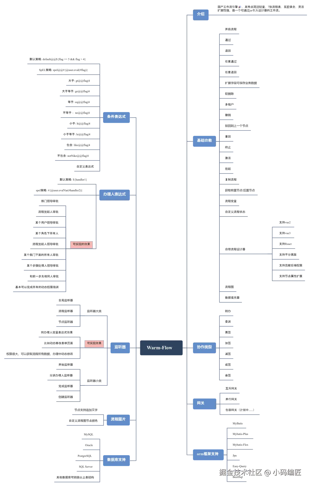 Warm-Flow 工作流脑图,具体下图所示: