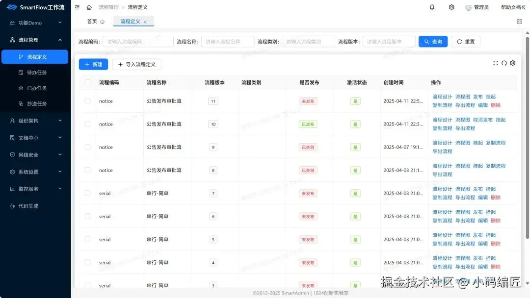 Warm-Flow设计简洁,仅包含7张表,代码量少,上手和集成速度快。对于那些希望快速启动项目并减少初始配置工作的开发者来说,这是一个极大的优势。