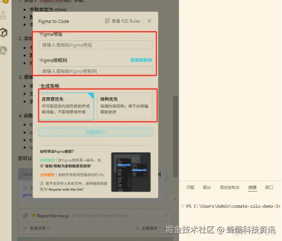 第三,设计稿一键转代码,还是带逻辑的。以往前端最烦的“像素还原”环节,被压缩成两步:复制Figma链接→粘贴进Comate。生成的不再是静态HTML,而是包含Vue响应式绑定的组件,比如一个按钮的点击事件和状态管理都能写好。后续调整也随时可进行,比如我觉得页面某个按钮阴影太深,我直接在窗口写“按钮阴影太深,调淡20%”,会自动定位到box-shadow值并进行修改,而不用像传统修改方法那样,先找文件再找代码段,之后再手动修改看反馈。