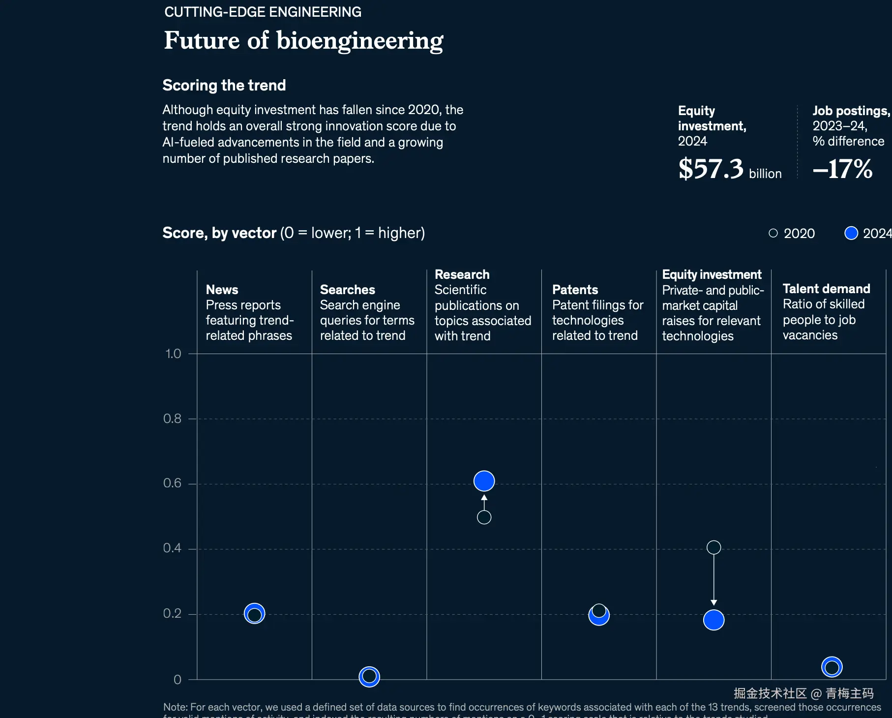 麦肯锡全球研究院 (McKinsey Global Institute) 于2025年7月发布了第五版年度重磅报告——《 Technology Trends Outlook 2025 》。这份报告深入剖析了13项最具变革潜力的前沿技术趋势,旨在帮助商业领袖识别哪些技术对其企业最为关键。报告基于详实的定量指标(兴趣度、创新度、股权投资、人才需求)和专家洞察,揭示了技术发展的现状、潜在影响及关键不确定性。