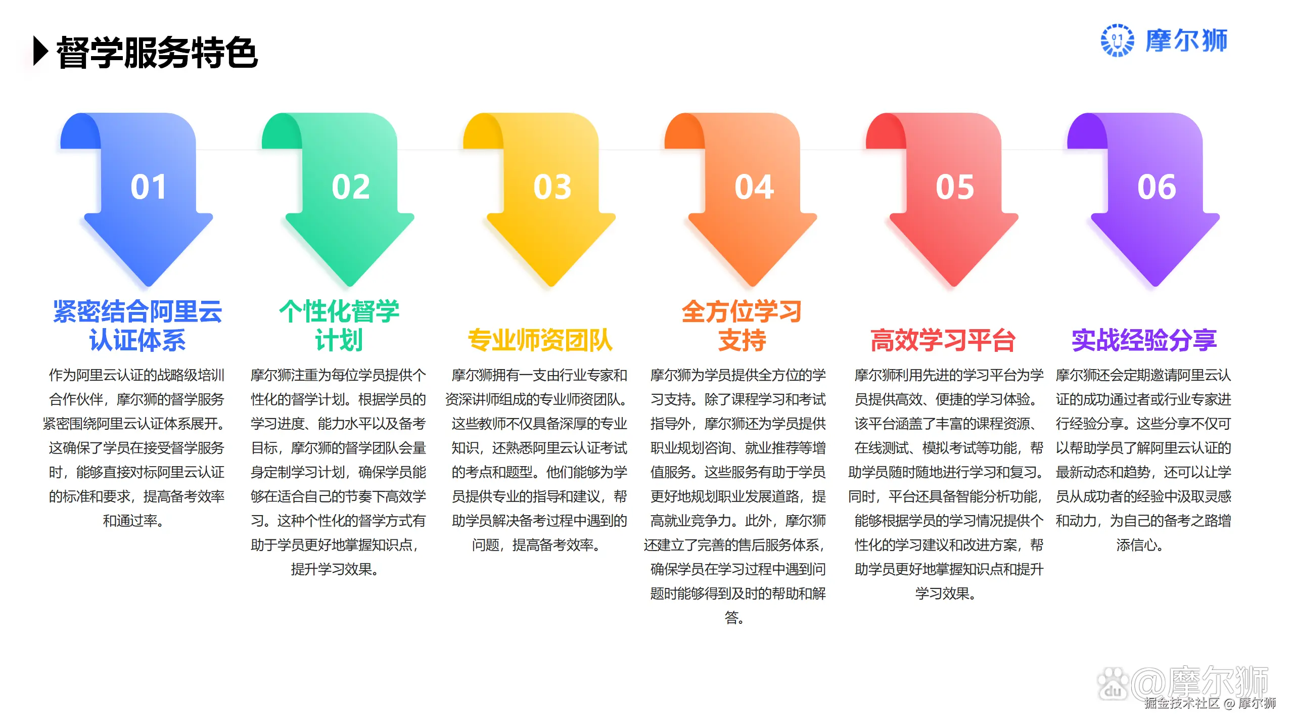 作为阿里云授权认证培训合作伙伴,武汉摩尔狮教育科技有限公司在认证服务方面具备强大优势。其提供的阿里云 ACE(Alibaba Cloud Expert)认证培训课程含金量极高,这是阿里云认证体系中的顶级认证,主要面向云计算领域的资深技术专家和架构师。摩尔狮的课程由阿里云官方认证讲师亲自授课,这些讲师对阿里云技术架构了如指掌,同时熟悉认证考核标准。在授课过程中,讲师们围绕阿里云最新的技术架构和解决方案,深入讲解云计算架构设计、大规模系统部署与优化、高可用性架构设计等核心内容。学员通过系统学习和大量实战演练,能够切实掌握阿里云云计算的核心技术,大大提升认证通过率。获得的 ACE 证书也成为学员在职业道路上彰显专业实力、晋升高级职位和获取高薪岗位的有力敲门砖。