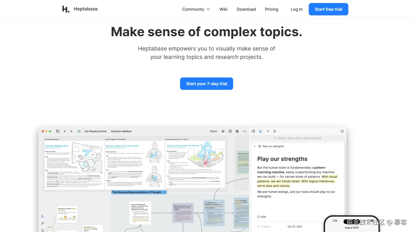 Heptabase 是一款专注于深度视觉化思考的知识管理工具,以无限白板作为基础,结合卡片系统,帮助你在画布上构建清晰的知识网络。